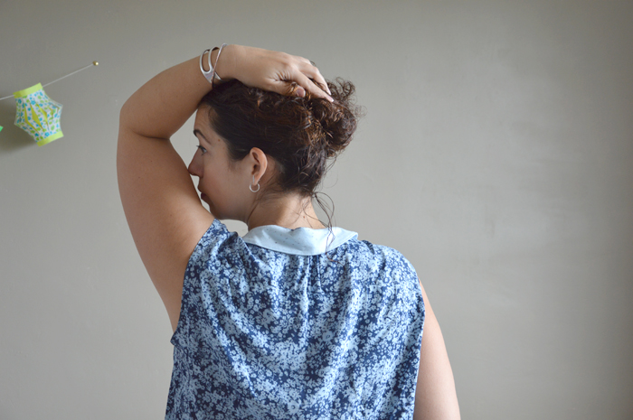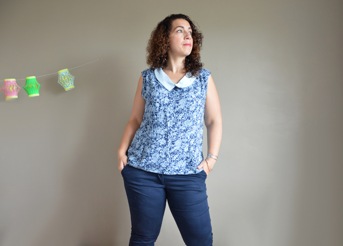 Vêtement adulte La blouse Airelle sans manche 8 juin 2018 En janvier 2013, je cousais ma première blouse Airelle de DeerandDoe. Qu’est-ce que j’étais fière de moi… 5 ans après, voici la deuxième blouse Airelle sans manche et avec col contrastant cette fois. Là encore, je la trouve très belle et je suis bien contente du progrès visible entre les deux ! Progresser en couture Voici la blouse Airelle sans manche 2018 ! Je t’ai republié l’article de la première Airelle car il était passé à la trappe. Mais qu’est ce qu’elle était moche cette version… Je l’ai jetée il n’y a pas longtemps. Le tissu ne s’est jamais assoupli, parce que je ne l’ai jamais portée et que le coton était trop raide ! Le mystère de l’encolure trop petite venait des marges de coutures que je n’avais pas supprimée, les bracelets de manche étaient affreux… Je peux te le dire maintenant, le 46 était limite (pourquoi j’avais pensé faire le 44 ?). Non, je n’ai pas honte, j’apprenais et je te montrais tout. D’ailleurs, c’est toujours le cas ! Peut-être que dans 5 ans, ou avant, je regarderai la blouse que je te présente aujourd’hui et j’aurai plein de critiques à lui faire, ça voudra dire que j’ai encore progressé et ça c’est cool. Le choix de tissus : le coup de poker J’avais acheté cette viscose bleu à fleurs au marché de la Plaine au mois d’août pour en faire un pantalon de grossesse. J’ai fait une toile que je t’ai présentée et… c’est cette toile que j’ai porté tout l’été ! La pauvre viscose n’avait plus de patron, je lui ai donné sa chance pour cette blouse. Elle est d’une fluidité et d’une douceur géniale. Pour le col contrastant, je n’avais rien qui convenait. Le coup de poker a été d’oser le col en jersey dans un tissu bleu ciel moucheté qui devrait devenir des t-shirts pour les filles et moi-même sous peu (voir journal créatif vidéo 2). Je ne savais pas trop ce qu’allait donner ces deux poids et deux matières si différents mais j’ai tenté le coup. Le patron de la blouse Airelle En 2013, je cousais sans comprendre ce que je faisais, du coup, j’ai redécouvert le patron en faisant cette version ! C’est un modèle de blouse assez simple, avec de jolis détails : un empiècement dos, des fronces aux épaules, la possibilité de mettre un col et des manches trois quart. Je me souvenais quand même que ces manches qui s’arrêtent pile au pli du coude. Ce n’étaient pas des plus agréables , ni seyant sur ma première version. J’ai d’abord pensé les allonger pour en faire des manches longues, puis j’ai réfléchis à la saison et… j’ai opté pour la blouse Airelle sans manche ! La réalisation s’est bien passée. Le peu de pièces a été vite découpé et vite assemblé. La fluidité de mon tissu a rendu les pièces un peu difficile à couper, mais pas de drame à déplorer. J’ai coupé les pièces à Nice… avec un ciseau de cuisine, parce qu’il n’y avait que ça ! Ode à la minutie en couture Depuis que j’ai décidé d’arrêter de bâcler mes coutures, je réalise que le plus long, c’est bien de préparer les pièces ! Je te passe le lavage et repassage du tissu, je le fais en général à l’achat. J’essaye maintenant de décalquer et couper les pièces en masse, disons pour 2-3 projets à la fois. Mais même une fois que ces étapes un peu chiantes sont passées, il reste une grande part de préparation et je découvre que soigner cette partie, c’est s’assurer une couture tranquille ensuite. Pour cette blouse, j’ai : repassé les pièces une fois découpées thermocollé le col en jersey Passer les fils de fronce à la main préparé les pinces dos et devant au fer Passé toutes mes pièces à la surjeteuse pour des finitions proprettes Et tu sais quoi ? Je commence à y prendre goût à tout ce soin, cette minutie… mais où est passée la dilettante qui sommeille en moi ?! Coudre la blouse Airelle sans manche Je n’ai eu aucun souci durant la phase de couture, à part bien-sûr la réparation de mes conneries habituelles. Mes galères sont venues du col, que j’ai thermocollé pour qu’il ait de la tenue mais… aussi pour cacher un malencontreux coup de ciseau ! Toute à ma réparation de col en péril, je n’ai pas réfléchis et j’ai thermocollé tout le col, marges de couture comprises. Sauf qu’au moment de rabattre tout ce petit monde avec la parementure, c’était trop raide à ça ne tenait pas en place, évidemment ! Alors, j’ai aminci les marges, j’ai cranté, j’ai repassé, repassé, repassé… Tellement repassé, qu’un petit coin du col a bruni. Pile devant. Heureusement que le jersey est moucheté, ça ne se voit pas trop, m’enfin, quelle dinde ! Finalement, j’ai fait des points invisibles tout autour de la parmenture pour la maintenir en place, ça passe. Mais ce n’est pas parfait et tant pis. Ma blouse Airelle sans manche a passé le teste de la journée de travail. Elle fait très casual sur un pantalon de tailleur, avec juste un je-ne-sais-quoi de folie. Comme je l’espérais la matière est un véritable bonheur à porter, vivement qu’il fasse vraiment chaud pour que je la mette sans châle et gilet en laine par-dessus… BlouseCoutureDeerandDoeFacile Previous post Écharpe géante pour froid polaire Next post Journal créatif vidéo 3# la ménagerie ! La chemise Mélilot rayée : pas passée loin du drame…La combi Marieke : le coup de coeur !Le slim baggy Leave a reply Annuler la réponse Δ Ce site utilise Akismet pour réduire les indésirables. En savoir plus sur la façon dont les données de vos commentaires sont traitées.