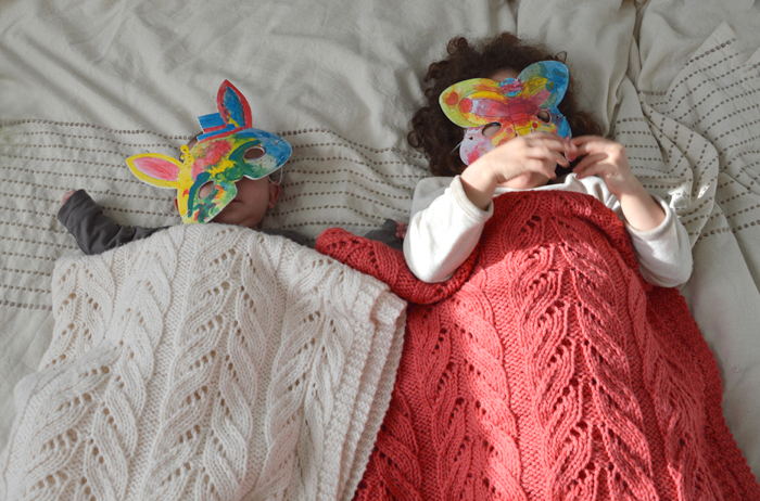 Accessoires tricotés Couverture : Mistral gagnant 19 avril 2018 Tu te souviens de la couverture de naissance de Céleste ? Qu’est ce que je l’aimais celle-ci… J’en étais si fière ! La couverture d’Eleonor me plaît aussi même si elle est beaucoup plus simple. Beaucoup plus grande et enveloppante aussi. Et ça n’a pas raté : Céleste m’a réclamé une couverture Mistral dès que celle de sa sœur a été finie. En mère dévouée, je m’exécute ! Tricoter deux fois le même patron J’ai déjà abordé la question avec les gilets Watson, mais tricoter plusieurs fois le même patron ne me dérange pas. L’essentiel c’est de ne pas le faire à la chaîne. Pour la couverture Mistral, il s’est passé plusieurs mois entre les deux, juste assez pour la retrouver avec plaisir. Je me souvenais assez bien du patron sans avoir besoin de me remettre dans le bain. Il s’agit donc de la couverture Mistral donc, un patron gratuit et qui ressemble très fort à la couverture Envol que l’on voit de plus en plus. Un joli motif fait de jetés et de mailles ensemble, qui se retient vite et donne un résultat travaillé alors que la technique est assez simple. Les modifications de la couverture Mistral Comme pour la première version, j’ai seulement rajouté une bordure de point mousse aux quatre coins, parce que je n’aime pas la bordure proposée par le modèle. Mis à part ce détail, c’est exactement la même couverture que celle d’Eleonor. Et toujours en Drops Nepal mais… rose. Ah Céleste et le rose, c’est une histoire d’amour qui dure ! Elle a choisi le corail identique à son gilet Watson et qui me plait assez (pour du rose). L’instant mathématique Si j’avais pris mon temps pour la première, alternant avec d’autres projets, pour celle-ci j’ai carburé et terminé la bête en trois semaines. J’aurais même pu être plus rapide si je n’étais pas tombée en rade de fil pendant le rabattage des mailles. Comment c’est possible ? La même laine, la même tricoteuse, les mêmes aiguilles et une telle différence ? je me suis bien creusé la tête, j’ai fait des tas de calculs inutiles. J’ai d’abord pensé à un problème de tension, puis de pelotes plus courtes, j’ai soupçonné une erreur de ma fiche projet Ravelry. Et j’ai enfin trouvé … Je suis archi nulle pour compter et comme une gourde, je n’ai pas réussi à remonter le même nombre de mailles. Comment j’ai pu à retomber sur mes pattes avec les motifs ? C’est un mystère ! Je m’en suis sortie en détricotant les les derniers rangs de motifs pour refaire la bordure en mousse mais qu’est ce que je déteste détricoter !! Le bloquage : activité mère / fille Depuis qu’elle tient assise, Céleste est devenue mon assistante bloquage. Elle adore ça (et moi je déteste !) : elle patouille la laine dans l’eau, m’aide à piétiner le rouleau de serviettse pour essorer tout ça. Mais sa joie ultime, c’est le planté d’épingles dans les tapis de bloquage ! Elle s’est régalée à bloquer celle-ci. Elle y a mis encore plus de cœur sachant que ce serait la sienne. Point tricot j’en ai normalement fini avec les couvertures pour cette année, sauf si des petits bébés s’annoncent… Mais je ne vais pas vers des projets plus rapides pour autant. j’ai commencé mon gilet fingering en taille adulte, j’ai l’impression que j’en ai pour toute la vie avec celui-là ! La couverture est inscrite dans le KAL « Culture de pelotes » dans le thème « Kal toi dans le canap' ». Il s’agit de tricoter un projet dans le cadre d’un autre Knit-ALong. La couverture Mistral va donc être inscrite dans « L’année de la blanket » organisé par Mélise – La boutiqueuse. On croirait pas comme ça mais c’est une sacrée organisation de tricoter ! Duo de couvertures Elles sont pas mignonnes mes poulettes emmitouflées chacune dans sa couverture Mistral ? J’aime bien cette idée de duo, ça souligne la sororité (oui, j’ai vérifié, c’est le féminin de fratrie, alors utilisons-le !). Eleonor n’a que cinq mois mais on pressent déjà leur complicité. La grande fait rire la petite qui sourit à la grande… Et moi je leur tisse, ou plutôt tricote, des petites preuves de ce lien. Elle me plait cette idée. BébéCouvertureDropsNepalDuoEnfantNaissanceTricot Previous post Gilet Citadel, le défi ultime Next post Journal créatif vidéo 2 : la schizo ! Un châle pour homme : tricot rapide !Les chaussettes chat moches, ½ failLayette fluo –Trousseau bébé Leave a reply Annuler la réponse Δ Ce site utilise Akismet pour réduire les indésirables. En savoir plus sur la façon dont les données de vos commentaires sont traitées.