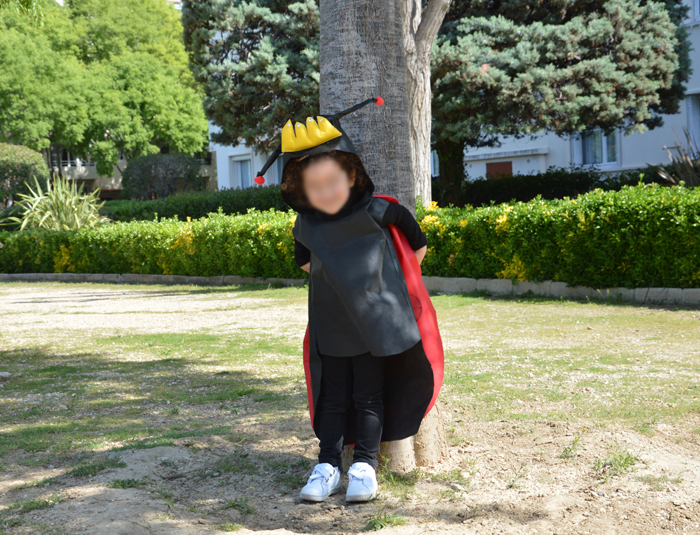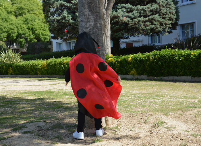 Vêtement enfant Un déguisement de coccinelle 17 mai 2018 Le carnaval de l’école a eu lieu ! J’attendais cet événement avec impatience. C’était l’occasion rêvée de fabriquer un déguisement d’enfant pour Céleste. Pour son premier carnaval, on a choisi le sujet ensemble. Après négociation et bifurcation vers ces chères princesses, Céleste et moi sommes tombées d’accord. Voici le déguisement de coccinelle fait par maman et magnifiquement porté par Céleste ! Le Dressy Bond, matériau sans prise de tête Tu te souviens du déguisement de perroquet que j’avais fait en partenariat avec Créavea ? Il me restait assez de rouge et j’ai dû recommander du noir pour faire ma coccinelle. Ce matériau, le Dressy Bond, proche de l’intissé des nappes, est bien pratique pour les déguisements. Il est léger et facile à travailler. Et il tombe plutôt bien même s’il est impossible à repasser et un brin rigide. L’avantage c’est qu’on peut l’enfiler sur une tenue normale, ce qui évite à l’enfant la pneumonie du carnaval et de crever de chaud en intérieur. Oui, car même si à Marseille le carnaval a lieu fin avril (une hérésie pour la niçoise que je suis), il fait encore assez froid et j’ai vu pas mal de princesses se cailler les miches et enfiler une bonne grosse doudoune le jour J ! Dessine moi un déguisement de coccinelle Pour fabriquer ma coccinelle, je suis partie d’un patron de gilet à capuche Ottobre. J’ai décalqué les pièces dos, devant et capuche. Ensuite, j’ai ensuite allongé les deux pièces de corps pour arriver à la taille souhaitée. Soit 74 cm, ce qui est assez long pour habiller Céleste sans qu’elle risque de marcher sur son costume. Pour les ailes, j’ai tracé un arrondi à main levée et je m’en suis plutôt bien tirée ! J’ai fait une erreur sur le devant du déguisement : je suis partie d’un vêtement prévu pour s’ouvrir avec un zip et j’en ai fait une tunique à enfiler par la tête. Il y a un espèce de surplus de tissu au milieu, je pense que ça vient de là et j’ai dû retailler l’encolure pour que Céleste parvienne à faire rentrer sa tête (énorme). Malgré ce souci, c’était une couture facile et rapide comme je les aime ! Les ronds ont été faits en prenant une sous-tasse comme gabarit et le tout à été cousu en deux temps, trois mouvements. Je voulais faire des yeux sur la capuche, comme pour le perroquet, mais Céleste n’était pas d’accord. Elle m’a expliqué que la coccinelle, c’était elle, donc ses yeux à elle suffiraient… si ce, n’est pas « incarner un personnage », ça ! La reine des coccinelles Tu as remarqué, en plus dans antennes, la capuche accueille aussi une magnifique couronne sertie de diamants. C’est ma sécurité anti « bad mother ». C’est vrai, je lutte contre les princesses, le rose et le monde merveilleux des petites filles qui attendent sagement leurs princes charmants en se faisant un balayage californien. Mais pour autant, je refuse que ma Céleste soit moquée ou triste parce qu’elle ne rentre pas dans le moule. J’ai donc eu l’idée de la couronne pour palier le déguisement trop décalé par rapport à ses copines. Arrivée le soir à l’école pour récupérer ma coccinelle, j’ai découvert que la copine de Céleste était en « reine des dragons ». Je ne suis finalement pas la seule à utiliser des subterfuges et ça me ravit ! Pour la réalisation, j’ai simplement découpé et rembourré une forme de couronne que j’ai cousu au bord de la capuche. En bonne mère dévouée, j’ai terminé mon ouvrage en cousant les diamants à la main. Pour les antennes, j’ai roulé des chutes de tissu noir que j’ai cousu en forme de tube. A la dernière minute, j’ai ajouté des cure-pipes à l’intérieur, parce que le pompon rouge au bout faisait pencher dangereusement le tout. La couture facile qui fait beaucoup d’effet Je l’ai découvert en faisant le perroquet mais ça s’est confirmé avec la coccinelle : j’adore coudre des déguisements ! C’est la couture sans prise de tête par excellence. Peu importe si ça ne tombe pas très bien, si certaines coutures sont apparentes (dis, coucou à la pince de capuche cousue sur l’endroit !). La conception est aussi très marrante à faire, il faut trouver des astuces pour coller au plus près de l’idée initiale. C’est vrai qu’avec la coccinelle, ce n’était pas très compliqué à réaliser mais qu’est ce que je me suis amusée! On a beaucoup tâtonné avec Céleste pour les ailes. Notre idée de départ, c’était de faire des ailes qui s’ouvrent, qu’on aurait pu accrocher aux poignets par des élastiques. Mais j’avais peur qu’on perde un peu l’effet coccinelle et que le tissus trop mouvant ne se remette jamais en place. On a échangé nos points de vue, essayé, argumenté. C’était un beau moment de complicité avec ma fille chérie. J’ai aussi pu découvrir, qu’elle avait déjà des idées bien arrêtée… je me demande de qui elle tient, cette enfant ? Ma petite fierté Le matin du carnaval, il pleuvait à torrent. J’ai eu très peur que l’école annule. J’ai préparée Céleste qui était habillée tout en noir pour aller avec le déguisement, je l’ai maquillée légèrement tout en appelant frénétiquement l’école toutes les 4 minutes pour savoir si c’était maintenu. Elle est finalement partie comme ça, excitée comme une puce et ravie de son déguisement de coccinelle. Les pauvres petits choux ont fait leur défilé dans la grande salle, à la lumière des néons mais ils s’en foutaient royalement tant ils étaient contents. Evidement, les parents n’étaient pas conviés mais j’ai vu les photos prises par la maîtresse. Et ma petite Céleste qui frétillait de joie, avec ses joues rougies au blush et un sourire qui ne s’effaçait pas de son visage. Et tu sais quoi ? La petite file ET le costume, c’est moi qui 