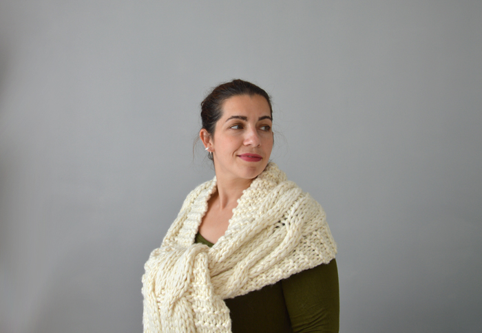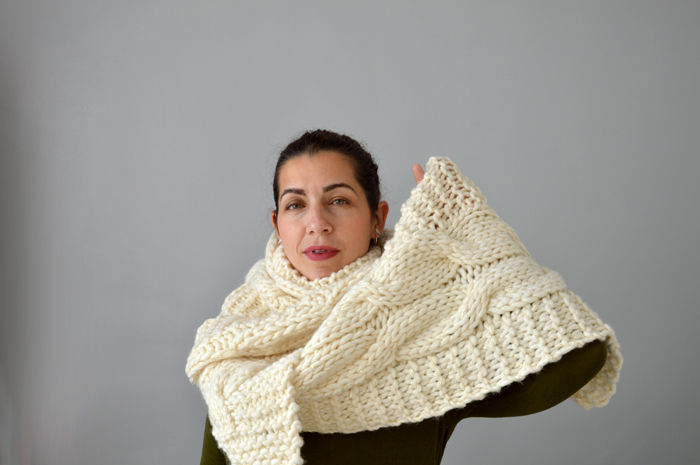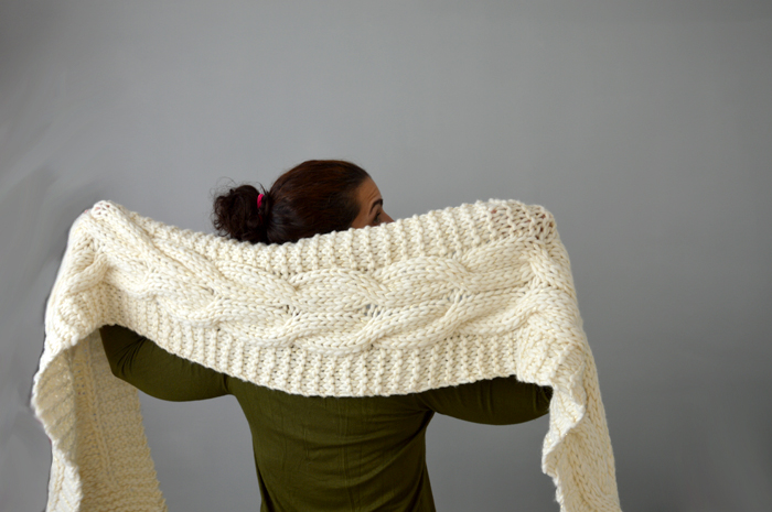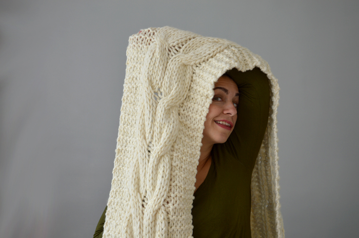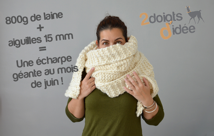 Accessoires tricotés Écharpe géante pour froid polaire 1 juin 2018 As-tu déjà tricoté avec des aiguilles plus grosses que des barreaux de chaise ? Je crois qu’avant cette écharpe, je n’avais jamais fait une pièce aussi énorme. Pour tricoter ce modèle d’écharpe géante, j’ai sorti les aiguilles 15. Elle n’est pas du tout de saison, ma tête sur les photos est parfois délirante mais il fallait bien ça pour te présenter un tricot aussi déraisonnable ! Un modèle coup de coeur Colombelle et moi, ça a été le coup de foudre immédiat. J’ai réussi à passer outre son nom ridicule et le poids de laine qu’il fallait, parce que l’écharpe géante Colombelle, il fallait que je la fasse ! C’est un modèle gratuit de Drops avec bonnet assorti. L’avantage c’est que la taille du bonnet te permet de l’utiliser en sac de courses, si besoin… Plus sérieusement, j’ai tout de suite aimé le motif de l’écharpe avec sa grosse torsade centrale et le point mousse sur les côtés. Un fil à découvrir Evidemment, je n’avais rien en stock pour tricoter un modèle pareil. Je l’avais remisé dans mes projets à venir et futurs achats quand Drops m’a fait le coup de la promo. Oui, je sais, j’ai sorti cette excuse un nombre incalculable de fois… Mais c’est la vérité, je suis victime des promos de Drops ! Impossible de passer à côté et à chaque fois c’est pareil, je repars avec mon petit stock de pelotes. J’ai donc choisi la laine Polaris, celle préconisée pour le modèle, en coloris 01, soit écru. C’est un énorme fil mèche en pur laine, qui grattouille un peu et qui ne glisse pas vraiment sur les aiguilles. Pour aller avec et contrebalancer le côté rustique de la grosse laine, j’ai ajouté un fil doré, acheté aussi chez Drops. J’ai tricoté les deux ensemble et j’aime beaucoup le résultat. Tricot galère Je ne sais pas par quoi commencer. Les aiguilles droites en diamètre 15 ? Le projet intransportable ? Le fil doré qui s’emmêle et la laine qui accroche tout sur son passage ? Non vraiment, ça n’a pas été une partie de plaisir à tricoter. Et tu as déjà essayé de faire une torsade avec des aiguilles 15 ? Après plusieurs essais, j’ai finalement utilisé… un critérium comme aiguille auxiliaire ! Les 800 grammes de laine sont passés dans l’écharpe géante. Il m’a manqué un peu de fil pour faire les rangs de points mousse symétriquement avec le début, mais je ne suis pas sûre que ça soit gênant. En prenant les photos, j’ai réalisé qu’il allait falloir lui coudre deux boutons pour faire tenir ce monstre sur les épaules et pouvoir la transformer en « infinity scarf » si besoin. J’ai dû reporter deux fois le blocage, parce qu’il me fallait une vraie belle journée ensoleillée pour laver et sécher la bête rapidement et éviter qu’elle ne se mette à sentir le chacal. J’admire celles et ceux qui se lance dans le tricot de couverture en laine géante. Je ne suis pas sûre que mes poignets résisteraient à un tel traitement, ou alors ce serait le dernier projet tricoté de ma vie entière… Une écharpe géante comme cadeau Cette écharpe est un cadeau que je vais offrir à la belle-mère de ma sœur ou la mère de mon beau-frère… tu suis toujours ? Je vais lui offrir lors de mon prochain passage à Nice, ce qui devrait nous amener à mi-juin, voire carrément en plein mois d’août. Cette écharpe va donc consolider ma position de fille bizarre qui offre des cadeaux faits mains. On pourra ajouter la corde « et pas du tout de saison » à mon arc ! Il n’est pas exclu que j’en fasse d’autres, parce que le rendu final me plaît beaucoup… A refaire, je réduirais peut-être le nombre de mailles de point mousse à chaque extrémité pour une écharpe moins large (et moins lourde !). Par contre, mis à part le coloris écru de celle-ci, je n’aime aucune des couleurs proposées par Drops. La solution serait alors de tricoter deux fils ensemble ? Kal Culture de Pelotes Cette écharpe va entrer dans le KAL, dans le thème « on sort les pieux« . Il fallait tricoter en aiguilles 5 mm, minimum, je crois que le contrat est rempli, non ? Au niveau des projets du KAL, je tiens le bon bout, même si je n’ai choisi que des pièces relativement longues à faire et qu’il m’en reste encore un paquet pour espérer réaliser les 16 pièces dans l’année. On y croit et on s’active des aiguilles ! CadeauDropsPolarisEcharpeTricot Previous post Manteau Vilette, en bleu canard Next post La blouse Airelle sans manche Un châle Forest Stroll vertDuo de Sockhead slouch hat : des bonnets rayés pour les fillesLe châle Garden of Giverny kaki et roooose ! Comments Chocofox 2 juin 2018 Répondre Coucou ! Ouah ça c’est de l’écharpe de compèt ! Ca a dû être chaud de la tricoter vu les températures actuelles. Elle est pas trop lourde à porter sur les épaules du coup ? En tout cas elle fait bien cocoon, en hiver ça doit être top *-* 2 doigts d'idée 4 juin 2018 Répondre Franchement, je l’ai tricoté fin avril / mi-mai et on n’a pas eu des températures habituelles, du coup, c’était pas gênant… C’est surtout le poids du tricot qui était difficile à supporter ! Merci de ton commentaire, à bientôt Geneviève 4 juin 2018 Répondre Je me marre de voir ce défi hautement relevé et des deux bras 😉 Il te faudra bien une valise pour la transporter dans les pays froids 🙂 Merci pour tes belles photos. Bonne semaine. Geneviève 2 doigts d'idée 6 juin 2018 Répondre C’est vrai qu’il faut bien les deux bras pour la porter (et encore plus au-dessus de la tête) : c’est du tricot-sport ! Je n’avais pas pensé à ce détails, il va effectivement falloir que je l’amène à Nice, on va bien rigoler à la rentrer dans le sac de week-end ? Sofichan 4 juin 2018 Répondre J’ai déjà laissé un commentaire sur ton projet ravelry mais cette écharpe est tellement belle 
