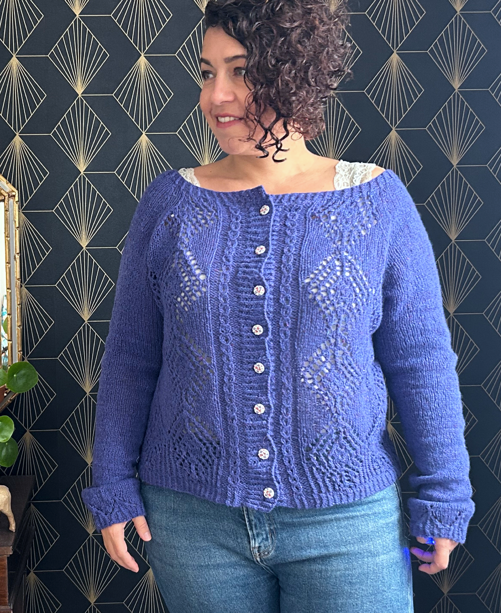 Pull et gilet adulte Le gilet Curio en laine Studio Donegal 1 mars 2023 Le gilet Curio que j’ai secrètement renommé “le gilet de la loose”… Pourtant, il avait tout pour plaire ce petit gilet violet ! Je te raconte comment je l’ai tricoté et pourquoi il a hérité de ce gentil sobriquet. Tricoter un gilet Curio Je poursuis depuis longtemps, l’envie d’avoir un petit gilet bleu foncé. Ajusté, plutôt court et qui irait parfaitement avec le reste de ma garde-robe. Tout est parti de la laine du Studio Donegal et rien ne s’est passé comme prévu ! La laine Darnie du Studio Donegal J’ai acheté cette laine à Dublin, dans la boutique The Constant Knitter qui a fermé depuis… C’est une laine filé en Irlande et teinte artisanalement. La couleur que j’ai choisie oscille entre le bleu et le violet et elle est légèrement tweedée de turquoise et rouge. J’adore le touché de ce fil, sa couleur… et j’avais hâte d’en faire un gilet ! Elle est considérée comme une fingering avec ses 410 mètres aux 100g et c’est sûrement le premeir souci que j’ai rencontré. En fait je n’ai jamais réussi à obtenir l’échantillon ! Le gilet Curio, deuxième choix de patron J’avais en tête de tricoter le LYS d’Andrea Mowry, une fois le patron acheté j’ai vite réalisé que je n’allais jamais arriver au bon échantillon… J’ai décidé de changer de modèle parce que ça me semblait compliqué. C’est comme ça que j’ai trouvé ce patron de Rachel Brockman qui est gratuit. Il se tricote avec une laine Sport et propose de jolis détails avec des côtes qui se prolongent en un motif aux manches. Le corps du gilet est entièrement composé d’une dentelle géométrique. Une période de loose J’ai commencé ce tricot le 3 décembre, après toutes les péripéties d’échantillon et en décidant de descendre d’une taille d’aiguille et d’opter pour la taille S. Le 5 décembre j’ai commencé à avoir mal au bras jusqu’à finir aux urgences en pleine nuit. Je te passes les errances médicales et la maltraitance aux urgences pour arriver au dénouement : 1 mois bloquée avec deux hernie cervicales dont une géante qui me paralysait le bras. Autant te dire que le tricot a dû attendre que la douleur se calme ! J’ai repris le Curio fin décembre entre les crises de douleur, en le traitant un peu de loin, un peu comme je pouvais ! Voilà pour le petit nom de mon gilet Curio de la loose qui reflète bien cette période de ma vie. Le gilet Curio en phase de tricot J’ai adoré le motif qui prolonge les côtes des manches. Comme d’habitude, je n’ai pas aimé tricoter les manches mais je les ai pourtant faites trop longues (boulet). Avec cette période bousculée, j’ai eu donc du mal à rester concentrée sur le nombre de maille du motif du corps, mais je crois que j’ai toujours rattrapé à temps, du coup je n’ai pas de défaut. Par contre,je n’ai pas suivi les indications de raglan et là, ça se voit : l’encolure est trop large, j’aurais dû monter encore mais les raglans eux étaient asse longs… bref, ça n’est pas une réussit et il est importable ouvert. l’est-il fermé ? Je te laisse me le dire… Porter un gilet en laine Au final, il est trop long, pas assez ajusté malgré le choix de la taille S. Quand aurais-je enfin un gilet marine court et ajusté tricoté main ?! C’est dommage parce que cette couleur est dingue. En plus, j’aime beaucoup les petits boutons fleuris avec un rappel du bleu violet que j’ai trouvés dans mon stock. La vérité, c’est que j’aurais dû choisir un projet différent pour cette laine décidément trop épaisse. Un pull prévu pour de la DK peut-être ? En fait, je n’ai pas prévu de le détricoter pour l’instant mais un jour peut-être…. FailGiletIrlandeTricot Previous post Blouse Tilda d’hiver Next post Une nouvelle tenue sauvage tout en jersey Le plull Plumetis, tricot de vacancesLe top Imarre en dentelle, tricot d’été très rose !Le pull sans manche Petals and Pearls Comments Trackbacks & Pingbacks Le gilet Lys : tricot sans fin mais qu'il est beau ! - Elise lovecraft dit : 14 mars 2024 à 10:38 […] avoir essayé avec ma jolie Darnie qui n’avait pas le bon échantillon, j’ai opté pour cette laine mérinos fuschia. Elle était […] Répondre Leave a reply Annuler la réponse Δ Ce site utilise Akismet pour réduire les indésirables. En savoir plus sur la façon dont les données de vos commentaires sont traitées.