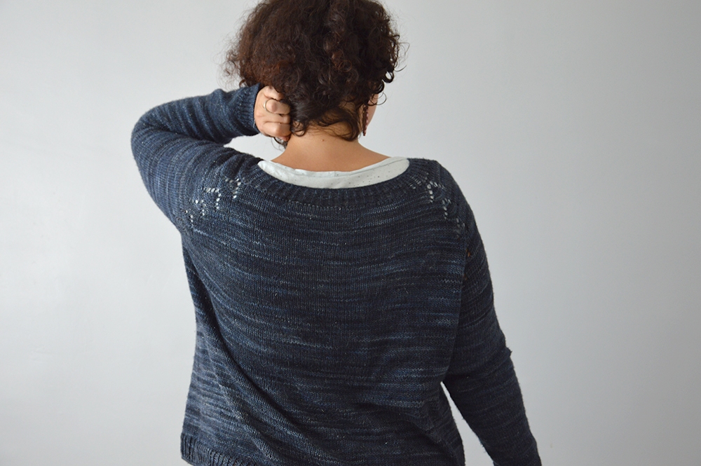 Pull et gilet adulte Tricoter le gilet Margot en Écheveau Solidaire 15 juillet 2021 J’ai l’impression que je ne t’ai pas parlé tricot depuis bien longtemps. Voici le gilet Margot, réalisé cet hiver et… que je n’ai toujours pas porté. Pourtant il est bleu marine comme j’aime, il brille et tout. Tricoter un gilet Margot bleu marine J’avais envie d’un gilet bleu marine, je voulais un raglan avec un petit détail sur les épaules. Le gilet Margot s’est imposé comme le choix parfait pour combler ce manque dans ma garde-robe ! La laine de l’Écheveau Solidaire J’avais la laine parfaite pour mon gilet : un bleu marine nuancé et qui brille discrètement. Une merveille réalisée par L’Écheveau Solidaire et que j’avais hâte d’utiliser. C’est la base « Strong and Shiny » que j’avais déjà utilisé pour mon étole Natural Woman et que j’aime beaucoup. Par contre, grosse surprise au moment de l’échantillon, c’était grand, c’était même beaucoup trop grand !! Il semble que je tricote de plus en plus lâche et ça ne m’arrange pas vraiment cette histoire. Le patron Margot de Along avec Anna C’est la première fois que je tricote un patron d’Anna. J’ai beaucoup aimé le principe du gilet qui correspondait bien à mon envie du moment. Il est disponible en anglais et en français, comme toujours, je l’ai tricoté en anglais, ma « langue maternelle de tricot ». Le gilet Margot est un raglan avec un joli jeu de dentelle aux épaules et sur les devants. Il est assez simple et je n’ai pas eu de difficulté particulière. J’ai quand même trouvé que parfois les explications étaient un peu succinctes, j’ai pensé à la débutante que j’ai été un jour et qui n’aurais pas aimé ça. Mon grand gilet Margot Quand j’ai vu la taille de l’échantillon, j’ai fait plusieurs tests pour trouver un bon compromis. Il aurait fallu descendre de pas mal de numéros d’aiguilles pour y arriver et cela me donnait une maille serrée, pas du tout agréable. Alors je suis restée en aiguille 3,5mm et j’ai tricoté la taille en dessous. Je réalise maintenant que j’aurai quand même pu descendre en aiguille 3 parce que, oui, ce gilet est grand ! On est presque sur un rendu boxy… La modification d’encolure Une fois terminé, j’ai bien vu qu’il était trop grand. J’ai du défaire l’encolure en i-cord que j’aimais beaucoup mais qui me faisait un décolleté de la mort. J’ai finalement opté pour une bonne vieille encolure en côtes qui a le mérite de cacher plus de peau et de resserrer un peu le tout. Un gilet Margot bleu… dans mon placard ! J’ai mis du temps à me décider à coudre mes jolis boutons bleus et il n’est pas exactement comme je l’avais imaginé mais j’en suis quand même contente. Je le testerai en condition réelle cet été en Bretagne, pour l’instant, il reste au placard ! echeveau solidaireGiletTricot Previous post Une combinaison Sirocco Mint sauvée de justesse ! Next post Mon premier blouson Magnésium : Indiana jones power ! Le gilet Curcuma indigo a fait un beau voyage !Le pull Flax light couleur PrismaticGilet Watson Project : Elise Comments Missjuju13 19 juillet 2021 Répondre Je le trouve super. C’est un modèle qui ne m’a pas tapé dans l’œil jusqu’à ce que je vois le tien avec l’effet loose. Je ne suis pas fans des pulls ou gilets cintrés ou avec très peu d’aisance sur moi. Finalement je me dis qu’il a du potentiel ce gilet et que peut être à voir si je ne me le tricoterai pas Elise Lovecraft 29 juillet 2021 Répondre Ah oui, c’est vrai qu’il est loose là ! ça le rend super confortable mais moi je voulais un peu plus près du corps… tant pis pour cette fois ! Leave a reply Annuler la réponse Δ Ce site utilise Akismet pour réduire les indésirables. En savoir plus sur la façon dont les données de vos commentaires sont traitées.