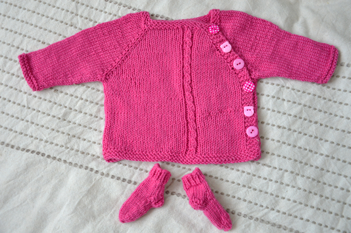 Pull et gilet enfant La layette de Romy 11 mai 2018 Quand un petit bébé pointe le bout de son nez, je dégaine mes aiguilles ! J’ai un nouveau duo préféré pour la layette. Ce duo gilet et chaussettes est parfait pour les premiers mois. Pour la petite Romy, j’ai choisi un vrai beau rose fushia agrémenté d’un petit grain de folie. Les nouveaux modèles tricot préférés Je t’en ai parlé avec la layette rose d’Eleonor, le Puerperium Cardigan et les chaussettes DK sont mes nouveaux basiques. Ils sont déclinables à l’infini, faciles à réaliser et ont juste ce petit « je ne sais quoi » pour être originaux. Les cadeaux de naissance comme j’aime ! J’ai refait ces deux patrons avec plaisir tant ils sont agréables à tricoter. Mais impossible pour moi de refaire exactement la même chose deux fois. J’ai donc ajouté une petite modification au gilet et, bien-sûr, changé de laine. Le merinos, star de la layette J’ai choisi la Merino Extra Fine de Drops que j’avais utilisée pour la couverture de Victoire. Ce rose color block change des roses layette ou pastel, qu’on utilise habituellement pour les bébés et qui me lassent. Il a depuis été offert et bien vu : la maman déteste le pastel et habille sa fille de couleurs qui claquent, youpi ! J’aime beaucoup ce merinos très rond et doux de Drops même s’il est souvent critiqué : oui, il prend des proportions hallucinantes une fois mouillé mais reprend à peu près sa forme une fois sec pour peu qu’on ne le bloque pas trop énergiquement. En plus, il est très moelleux et il passe en machine. Mon seul bémol, c’est la palette de couleurs proposée par Drops : il y en a peu qui trouve grâce à mes yeux… La torsade qui change tout ? Tu sais que le Puerperium cardigan se caractérise par un boutonnage déporté ? C’est d’ailleurs tout ce qui fait son originalité. Pourtant, au moment de le commencer pour la layette de Romy, j’ai décidé de créer une fausse patte de boutonnage centrale en ajoutant une torsade au milieu. Je trouvais ça marrant et décalé. Si tu es un œil de lynx du tricot, tu remarqueras qu’il s’agit d’une des torsades de mon gilet Citadel. Je me suis bien amusée à le tricoter avec ce petit ajout qui rythme le tricot. Par contre je pense qu’il n’y a que Céleste qui l’a remarqué puis qu’elle m’a dit que je m’étais « trompée d’endroit pour coudre les boutons ». Heureusement que j’ai ma fille pour me soutenir dans ma créativité ! Pour continuer dans la petite touche de folie, j’ai choisi trois paires de boutons coordonnées plutôt que six boutons identiques. J’aime beaucoup ce résultat et j’essaierais de reproduire ça sur mes prochains tricot. Attention à l’échantillon ! Quand j’ai démarré cette layette, j’ai refait un petit échantillon pour valider le rendu de la laine avec ces aiguilles. Tout me semblait identique à la version d’Eleonor : le drapé, la texture, la taille. Pourtant le gilet a nécessité plus de laine que prévu et je ne pense pas que la torsade que j’ai rajoutée soit totalement responsable de ça. Pareil pour les chaussettes qui, pour une taille égale, ont mangé plus de fil. Heureusement qu’il me restait une pelote sinon je n’aurais pas pu les terminer… Il faut vraiment que je sois plus rigoureuse sur l’échantillon ou que je prévoie un peu plus large sur le fil pour éviter d’avoir souvent ce type de surprise. Disons que sur un projet tricoté en une journée, ça fait sourire mais quand ce sont plusieurs jours de travail qui sont mis à mal, je ris jaune. Rebelle attitude Ce duo de layette est entré dans le Kal Culture de Pelotes, sous le thème bonus « Je suis une rebelle » puisque : j’ai altéré le patron en ajoutant une torsade, tricoté de la laine DK en 2.5 et composé une farandole de boutons. C’est tout ce que je souhaite à cette nouvelle petite fille, d’adopter la belle et rebelle attitude comme un mode de vie… BébéCadeauChaussettesDropsMerinoEFGiletLayetteNaissanceTorsadeTricot Previous post Journal créatif vidéo 2 : la schizo ! Next post Un déguisement de coccinelle Le petit pull d’EleonorLe fisherman’s pullover en bleu turquoiseEloïse en robe rouge cerise Leave a reply Annuler la réponse Δ Ce site utilise Akismet pour réduire les indésirables. En savoir plus sur la façon dont les données de vos commentaires sont traitées.