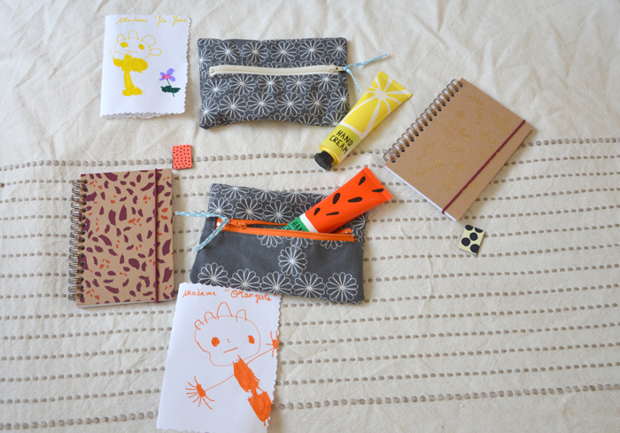 Accessoires cousus Le cadeau de la maîtresse ou la trousse cousue 6 juillet 2018 La semaine dernière, je te parlais du sweat customisé licorne et de l’année déjà écoulée. Qui dit fin d’année, dit cadeau de la maîtresse fait main. Enfin, une partie est faite main, pour les reste, je suis allée chez mon dealer de babioles préféré, histoire d’offrir à la maîtresse et à l’ATSEM, un petit paquet bien garni. Dire merci tout simplement Quand j’ai commencé à m’intéresser à la question du cadeau de fin d’année fait main, j’ai vu des choses incroyables et magnifiques sur le démoniaque Pinterest. Les mamans, parce que oui, il faut le dire, ce sont toujours les mamans qui s’y collent, rivalisent de créativité pour réaliser le cadeau de la maîtresse. Sur Instagram, j’ai même vu des fofolles qui avait fait des châles tricotés ! Je suis bien-sûr admirative de toutes ces réalisations mais moi je voulais partir sur quelques chose de plus simple. Il fallait aussi impliquer Céleste au maximum. Je vois plus ce cadeau comme une petite attention, pour dire merci. Et en ce moment, j’en ai un peu marre de la surenchère partout, j’ai envie de revenir à plus de simplicité. La trousse 15/20 J’aime bien fabriquer les cadeaux (ah ben ça, tu n’avais pas deviné hein ?!) mais j’aime aussi rajouter de petits éléments achetés. Parfois, je choisis une thématique et je décline plusieurs babioles qui rentrent dans le thème. Ici, j’ai juste choisis de petits objets qui me plaisent chez Hema… et que j’aimerais qu’on m’offre ! Pour la partie faite main du cadeau, je suis partie sur une trousse. Trousse, maîtresse : je trouvais ça raccord. Et puis, moi je n’ai jamais assez de trousses pour ranger tout mon bazar et mes petits machins. On est toutes pareil, non ? J’aurais pu prendre n’importe quel tuto de trousse gratuit, j’en ai enregistré plein sur mon tableau Pinterest. Mais depuis quelques temps, j’ai une nouvelle envie en couture. Une envie qui m’étonne moi-même tant que je me sentais loin de tout ça, et pourtant ! J’ai envie de mieux comprendre, de décortiquer et de trouver la meilleure façon de faire pour moi. Bref, j’ai envie de faire mes propres patrons et d’être plus « actrice » de ce que je couds. J’ai donc imaginé la trousse « 15/20 ». Je n’ai rien inventé, mais j’avais envie d’une trousse plate avec la fermeture éclair sur le devant, alors, je l’ai dessinée ! J’ai adoré la faire, même s’il faut encore que j’améliore quelques point techniques. Si ça t’intéresse d’avoir le patron / le tuto, dis-le moi en commentaire ou ailleurs. Le cadeau de la maîtresse fait main C’est un cadeau fait à quatre mains et .. en double, puisque j’ai fait exactement le même paquet pour l’Atsem de Céleste. J’ai donc cousu mes deux petites trousse 15/20 et nous avons choisi ensemble les petits objets chez Hema : Un carnet A6 Un marque page magnétique Une crème pour les mains à la pastèque ou au citron J’ai voulu que Céleste fasse un dessin pour chacune. Elle était libre mais avait juste pour consigne de « s’appliquer ». Tes enfants aussi font des dessins de fou sur la nappe en papier crado du resto et d’infâmes gribouillages noirs sur les dessins à offrir ?! Elle était assez inspirée puisqu’elle a fait de jolies madames et qu’elle les a même gratifiées d’un nom. La touche de Céleste Réunion de famille oblige, Céleste a fait son dernier jour d’école mercredi dernier. Je l’ai accompagnée, une fois n’est pas coutume, pour qu’on donne le cadeau ensemble à la maîtresse et à l’ATSEM. Fidèle à elle-même, elle leur a tendu les paquets sans un mot, un peu précipitamment mais avec un grand sourire. En tant que présidente de mon fan-club, elle s’est empressée de dire que c’est maman qui avait fait les trousses. Et comme je suis présidente du sien, j’ai précisé qu’elle avait écrit les remerciements et son prénom toute seul. Elle était fière et moi-aussi. Avec le cadeau de la maîtresse, je crois que j’ai réussi la dernière épreuve de l’année ! Je suis fin prête pour septembre… CadeauCoutureEcoleTrousse Previous post Le sweat customisé licorne Next post Gilet Old Growth bébé, 2ème du nom Trousse de toilette en suédineLe berlingot chaufferetteDeux sacs d’artistes pour les filles Leave a reply Annuler la réponse Δ Ce site utilise Akismet pour réduire les indésirables. En savoir plus sur la façon dont les données de vos commentaires sont traitées.