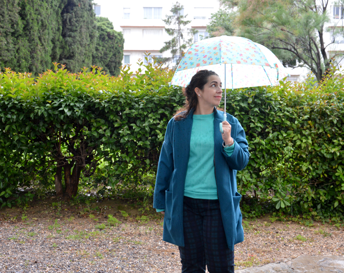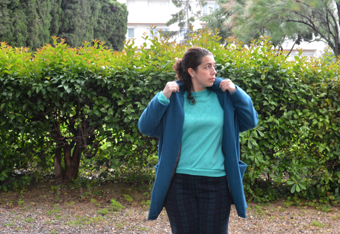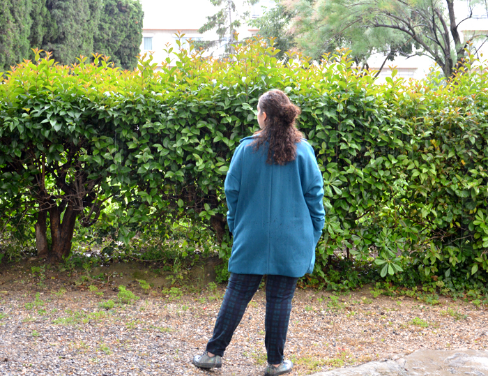 Vêtement adulte Manteau Vilette, en bleu canard 24 mai 2018 C’était mon défi couture, j’ai pris mon temps, mais le voilà enfin : je me suis cousu un manteau Vilette, de la Maison Victor ! Sous tes applaudissements… Si la phase couture s’est bien passée, niveau tombé, on repassera. Mais c’est le jeu du cousu-main et je suis quand même bien contente de l’avoir fait. N’écoutant que mon courage et faisant fi des saisons, je suis allée le prendre en photo sous la pluie par un curieux jour de mai où le manteau était, presque, de rigueur. Oser coudre une pièce technique Il semble que mon journal créatif vidéo ait un effet « pousse au cul sur moi ». Tout ce que j’ai annoncé dans mon premier épisode est en cours ou a été fait, incroyable non ? Il faut dire que j’ai bien traîné sur ce manteau. J’ai décidé de le faire il y a plus d’un an. A la sortie du magazine, j’ai décalqué le patron. Et ce n’est que pendant mon congé maternité, que j’ai enfin découpé les pièces. Je m’y suis mise en mars, un peu quand je pouvais et beaucoup le week-end. En couture, il n’y a aucune raison d’avoir peur, il faut prendre le temps de réfléchir, chercher à comprendre et regarder des tutos si besoin. C’est une démarche qui me permet d’aborder plus sereinement ma couture et surtout avec beaucoup plus de légèreté qu’à mes débuts où j’étais terrorisée. Lainage et polyester, les ennemis du fer à repasser Pour réaliser mon manteau Vilette, j’ai choisi un lainage de mon stock issu de mon achat compulsif dans une mercerie marseillaise qui fermait, il y a 5 ans. Il est d’une couleur que j’adore, un bleu canard profond. C’est un mélange de laine et de polyester, assez fin, qui a l’air chaud quoi qu’un peu râpeux au toucher. Je ne l’ai pas lavé, parce que j’ai eu peur. Je l’ai par contre bien repassé et… j’ai découvert qu’il n’en faisait qu’à sa tête même repassé à fer très chaud et à toute vapeur. A ce moment là, il lustre un peu mais ne tient toujours pas les plis. Pratique, tiens ! Le polyester de doublure vient de chez Tissus.net, acheté en soldes, exactement pour ce projet. Il est très fin, très fuyant, pas particulièrement fun et se froisse toutes les 2 secondes. Je ne sais pas combien de fois je l’ai repassé, durant la confection ! Il n’a pas été une partie de plaisir à couper et je ne sais pas comment je m’en suis sortie sans énorme défaut sur mes pièces tant il glissait. Le manteau Vilette, coupe oversize Quand le La Maison Victor contenant ce modèle est sorti ça a été une évidence, il m’en fallait un ! Je venais de donner un manteau pied-de-poule du commerce avec exactement la même coupe car il ne m’allait plus et le Vilette, me semblait le remplaçant idéal. Sur le papier, j’aime beaucoup la forme arrondie créée par les épaules tombantes et le col tailleur. Pour moi, c’est la pièce à la fois chic et décontractée. Un bon manteau de tous les jours quand on ne passe pas beaucoup de temps dehors en hiver (et qu’on habite à Marseille !). J’ai choisi la Taille M, qui correspondait à mes mensurations d’avant grossesse. Un an après, au moment de m’attaquer au tissu, j’ai choisi, en connaissance de cause, de conserver le M. Bien-sûr, je savais que ça ne correspondait plus vraiment niveau taille, mais je me suis dit que ça irait quand même, juste un peu plus ajusté. Le manteau idéal pour débuter Attention, je n’ai pas dit pour les débutantes! Cependant, le manteau Vilette est un bon modèle pour s’attaquer à un vêtement comme le manteau pour la première fois. Il n’a pas beaucoup de pièces et les explications sont claires pour la majorité des étapes. La façon de coudre les poches n’est pas idéale et je trouve qu’il est très difficile d’avoir un rendu net. Les miennes plissent un peu, mais on peut très bien changer de façon de faire et le simplifier, du même coup! D’ailleurs, sur les photos, les défauts sont accentués… Comme je l’ai dit dans ma deuxième vidéo, je n’ai rien compris à l’assemblage doublure et extérieur. J’ai regardé pas mal de tutos et ça semble être une façon classique de faire, mais moi je comprends pas ! J’ai trouvé une autre façon de faire qui m’a semblé plus facile et qui s’est très bien passée. Une couture plaisir Je me suis appliquée, j’ai pris mon temps et j’ai réussi. Je n’ai pas rencontré de difficulté majeure et ou raté complètement une étape. Evidemment, il y a des points à améliorer mais il est tout à fait mettable ! Je suis très fière de mon col qui se défend bien pour une première fois et la plupart des coutures sont jolies, malgré ce lainage récalcitrant au fer à repasser. Tu l’as compris, j’ai bien aimé coudre mon manteau Vilette ! Un seyant pas terrible Si la couture s’est bien passée, le tombé lui n’est pas à la hauteur de mes efforts ! Il est trop large au buste et trop serré aux hanches ! Donc, je n’ai pas posé les boutonnières pour l’instant parce qu’il ne ferme pas. C’est de ma faute aussi, il me reste 6 kg post-grossesse et je sais exactement où ils sont logés. J’aurais dû me douter que ça serait serré… m’enfin j’ai pensé « oversize ». J’ai joué, j’ai perdu ! Il y a encore de l’espoir pour lui, d’ici à ce qu’il fasse froid, j’aurai peut-être perdu mon excédent de bagages et alors, j’aurais un manteau parfait pour l’automne. Je pars demain après-midi à Dublin et j’espère juste ne pas avoir à l’emporter. Parce qu’un manteau qui ne ferme pas, c’est un peu le même concept que la doudoune sans manche : c’est n’importe quoi ! CoutureDébutanteLaMaisonVictorManteau Previous post Un déguisement de coccinelle Next post Écharpe géante pour froid polaire Paillettes et bleu marine : le nouveau sweat Maëlle préféréEn sweat Courcelles blancLe manteau Magnésium