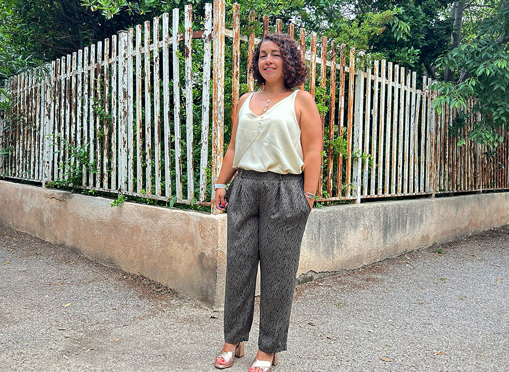 Vêtement adulte Pantalon Essential : la toile très portable ! 30 mai 2024 C’est un coup de cœur tissu qui à entrainé un coup de cœur patron. Le pantalon Essential est arrivé dans sa première version qui devait être une toile mais être portable, si possible. Ça tient à peu de chose parfois… Coudre le pantalon Essential La recherche du patron de pantalon idéal est un travail de longue haleine : j’en teste beaucoup et peu me donnent satisfaction. Quand j’ai découvert ce modèle, je me suis dis que ça pouvait se tenter, je crois que j’ai bien fait. Le patron Essential Ce patron de pantalon est signé My Dress Made. Si ses collections de tissus de cette marque me font régulièrement de l’œil, je n’avais pas découvert qu’elle proposait également quelques patrons. Celui-ci est un pantalon aux jambes droites (il y a une option jambes larges), poches italiennes avec fermeture par dos élastiqué ou zip côté. Un patron assez simple mais avec du potentiel, s’il tombe bien. Le tissu kaki du marché Ce tissu a une histoire rigolote ou alors c’est moi qui suis une petite marrante. C’est le tissu que mes copines ont choisi pour le défi mon coupon marseillais de cet hiver. J’avais alors passé mon tour, pas inspirée par sa couleur kaki. Au moment de choisir une viscose pour ma toile de pantalon Essential, c’est celle-ci que j’ai choisie au marché de la Plaine. Ah oui, je ne t’ai pas dit : j’ai craqué pour le tissu Ayurvéda de My Dress Made et j’aimerais beaucoup en faire un pantalon. Sauf qu’avant de couper dans cette merveille, je devais valider la taille, la coupe. Il me fallait donc une viscose avec un tombé proche de celle-ci. C’est ce tissu qui s’en rapprochait le plus et sa jolie couleur m’a beaucoup plus. Une folle, qui change d’avis chaque deux mois… Place à la couture de pantalon Comme je te l’ai dit, je couds beaucoup de pantalons. Du coup, j’ai l’habitude et je me débrouille assez bien sur les différentes étapes. Pour ce pantalon Essential, il y en a peu mais les explications sont vraiment très succinctes. Je n’ai pas rencontré de difficulté mais si tu débutes, je te conseille d’avoir un autre tuto de pantalon sans braguette sous la main pour bien comprendre. La partie la plus difficile a été la pose du passepoil en similicuir. Cette petite coquetterie me vaut d’avoir les poches qui baillent légèrement parce que la viscose est trop légère pour ce passepoil. Pourtant j’aime bien le style que ça donne… Porter le pantalon Essential Tu reconnais le top des photos ? C’est le Madame Maya cousu il y a deux ans ! Je l’aime toujours autant mais il froisse le coquin… Concernant le tombé du pantalon Essential,je suis contente. Je l’ai coupé en 42 et j’aurais peut-être pu passer au 40 à la taille. Je trouve que les plis creux sur le devant ajoutent une petite touche chic. Pareil pour la ceinture élastiquée seulement dans le dos qui fait un meilleur rendu devant. La viscose tombe bien mais elle aussi froisse un peu. V’est un coup à finir plissée le soir après une journée métro, boulot… Il ira très bien avec des sandales plates, comme avec mes talons des photos. Je pense que je vais le porter tout l’été ce pantalon kaki… J’ai d’ailleurs prévu de le refaire dans la magnifique viscose Ayurvéda dans pas longtemps ! CoutureDéfiétéGarde-robeMy Dress MadePantalon Previous post La robe Magnolia graphique, petit bijou de printemps Next post La combi Marieke : le coup de coeur ! Vite une robe Lora moutarde !La robe Orage en veloursLa blouse Dressed en double gaze à pois dorés Comments Trackbacks & Pingbacks Pantalon Essential Ayurveda - Elise lovecraft dit : 17 octobre 2024 à 11:14 […] la deuxième fois que je couds ce pantalon. Incroyable mais vrai, j’avais fait une toile pour vérifier le tombé. Je l’ai beaucoup porté […] Répondre Leave a reply Annuler la réponse Δ Ce site utilise Akismet pour réduire les indésirables. En savoir plus sur la façon dont les données de vos commentaires sont traitées.