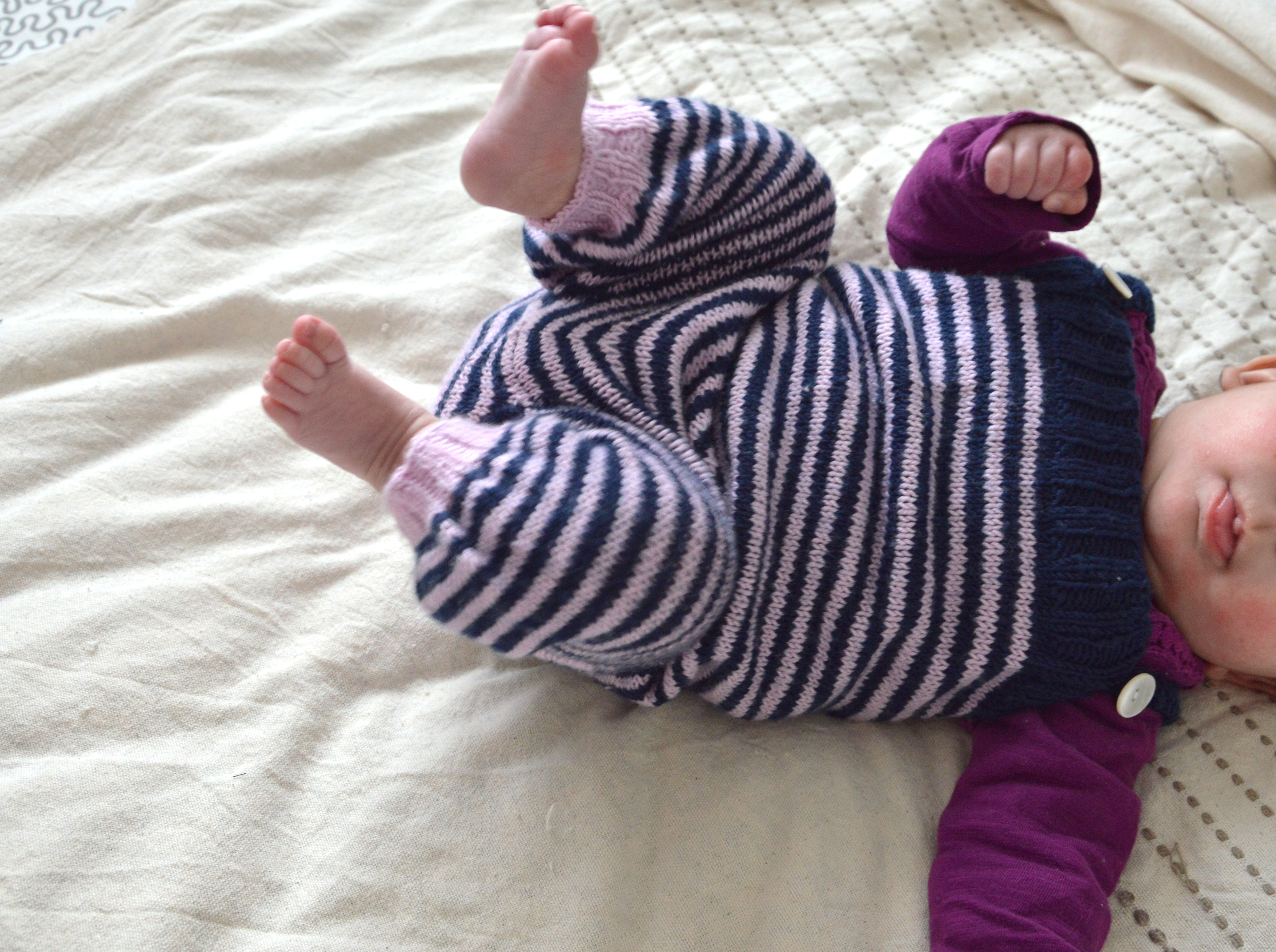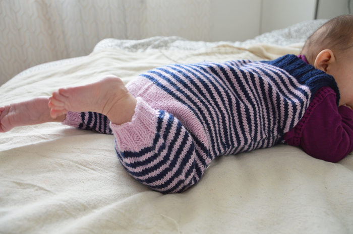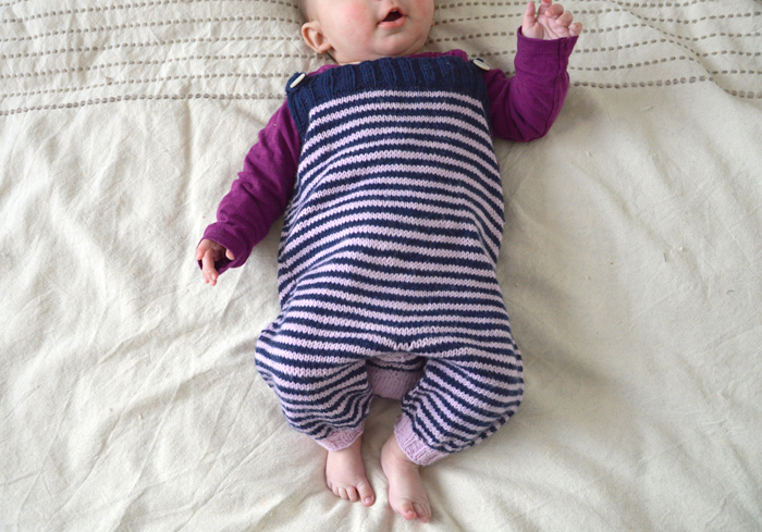 Pull et gilet enfant Salopette tricotée pour petit bébé 29 mars 2018 Voici la dernière pièce du trousseau d’Eleonor qui restait à te présenter : la salopette tricotée. J’avais envie depuis longtemps de m’essayer à cet élément du dressing de bébé. J’ai choisi de réaliser celle-ci à rayures (je t’ai dis que j’adore les rayures?) et je l’ai imaginée comme une pièce unisexe… mais ce n’étais pas l’avis de tout le monde ! Les fils J’ai choisi la Baby Merino de Drops dans le ton rose bizarre (le même que dans le châle de maman) et bleu marine. Une pelote de chaque couleur a suffi pour la taille 3 mois. J’avais déjà utilisé ce fil en bleu ciel pour Celeste, pour lui faire un tout petit cache-cœur de naissance, jamais montré ici. Il m’en reste d’ailleurs un cargo avec lequel je voudrais faire un pull pour Eleonor. Avant ses 18 ans, si possible. Comme je l’ai dit dans le journal créatif vidéo, ce fil vieillit très bien. Il ne bouge pas au lavage en machine, et il est très doux. J’aime la définition du point sur le mérinos, surtout dans une laine fine comme celle-ci. Bref, moi ce fil, je l’aime bien. Le modèle de salopette tricotée Il s’agit d’un patron gratuit au doux nom de Mtoto overalls (Mtoto veut dire bébé en swahili selon Google). Il ne présente pas de difficulté particulière. Les différentes étapes sont assez bien expliquées. C’est moi qui ai rajouté les rayures, parce que j’adoooore le rayures. C’était assez amusant à faire au début mais vers la fin j’ai trouvé le temps long : rayure ou pas rayure, le jersey n’est pas ma passion surtout en rond ! Je ne sais pas si c’est à cause du patron ou d’une erreur de ma part mais je me suis retrouvée à faire les augmentations de la fourche dans le mauvais sens… Le temps que mon cerveau de femme enceinte connecte deux neurones, j’avais terminé et décidé de ne pas défaire. salopette pratique… Sa forme un peu large, sa matière très douce en font le vêtement parfait pour tenir le bébé au chaud. Attention, c’est du trois mois mais pour bébé baraqué. A enfiler sur un legging et un t-shirt à manches longues pour transformer bébé en petit oignon. J’adore le détail de l’empiècement à l’arrière, fait en rangs raccourcis pour former le bombé des fesses. C’est trop mignon. … Et unisexe ? J’ai tricoté cette salopette sans savoir si bébé 2 serait une fille ou un garçon. Ça m’amusait de faire des rayures roses et bleues, les deux clichés réunis en une seule salopette. J’ai quand même eu des remarques horrifiées « mais tu ne vas pas lui mettre si c’est un garçon ?! avec tout ce rose ». Il y en a pourtant autant que du bleu et je ne connais aucune histoire de bébé garçon n’ayant pas survécu au port du rose…Quand cela cessera-t-il ? Probablement jamais ! Fin de la layette La salopette tricotée Mtoto signe le renier tricot du trousseau de naissance d’Eleonor. Depuis qu’elle est née, mis à part un mini bonnet tricoté en urgence, je n’ai plus rien fait pour elle. Il est donc temps de s’y mettre et de réfléchir à sa collection printemps/été, va falloir s’activer de l’aiguille ! BébéDropsBabyMerinoLayetteSalopetteTricotTrousseau Previous post Facile à coudre : le sac à goûter ! Next post Des accessoires faciles à coudre : la pochette à barrettes Le gilet voyageurLe fisherman’s pullover en bleu turquoiseEloïse en robe rouge cerise Comments Pascale 29 mars 2018 Répondre J’adore, le modèle est extra et ton idée de mettre des rayures le rend très peps ! je viens te télécharger le modèle pour un petit bébé prévu pour octobre ! Merci pour le partage ! 2 doigts d'idée 30 mars 2018 Répondre Merci de ta visite Pascale et bon tricot ! C’est un modèle très facile à réaliser et à faire porter aux bébés ! Anne 13 avril 2018 Répondre C’est trop mignon ! J’adore. Bon vendredi 2 doigts d'idée 17 avril 2018 Répondre Merci de ton commentaire Anne ! Leave a reply Annuler la réponse Δ Ce site utilise Akismet pour réduire les indésirables. En savoir plus sur la façon dont les données de vos commentaires sont traitées.