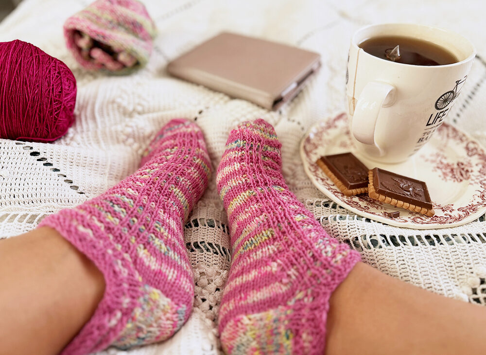 Accessoires tricotés Les socquettes tricotées au Canada 14 décembre 2023 Pour mon road trip au Canada, j’ai décidé de faire des socquettes tricotées ! En un peu moins de 15 jours, j’ai réussi à me faire deux paires de chaussettes. J’ai utilisé un duo de laine très cool. Des socquettes tricotées en rose et multicolore ! L’an dernier, au Costa Rica, j’ai pris un gilet en alpaga. C’était encombrant, j’avais trimballé beaucoup de pelotes et finalement peu tricoté. Cette année, pour les vacances, j’ai opté pour la légèreté : une paire d’aiguilles, deux pelotes de laine et c’est tout. Ce que je n’avais pas prévu c’est la rapidité d’exécution des socquettes…. Les patrons de mes socquettes tricotées La première paire de socquette est faite d’après le modèle Free Time que j’ai envie de reproduire à l’identique depuis longtemps. Il y a plusieurs variantes mais le principe c’est une alternance de mousse et de jersey avec deux laines pour créer le motif en relief et rayé. C’est super joli ! Je n’avais emporté qu’une paire d’aiguilles et ces deux pelotes. Alors, j’ai plongé dans mon Ravelry à la recherche d’une deuxième paire. Et comme on ne change pas une équipe qui gagne, j’ai refait des Rose City Roller… déjà faites plusieurs fois. Attention, le patron n’est plus dispo ! Les laines à chaussettes rose et multicolore Pour les socquettes Free Time, j’ai choisi une Fabel de Drops pour le rose et une Mondim de Rosa Pomar pour la multicolore. La paire de Rose City Roller est faite tout en Mondim. J’ai d’ailleurs acheté cette dernière au Knit Eat l’an dernier chez Lanaé Tricot et j’en suis très contente ! J’avoue que je n’ai pas trop saisi la logique d’alternance des couleurs parfois ça fait des lignes, parfois des bandes… est ce que ça fait un peu de pooling ? Je n’en sais rien mais ça ne m’a pas vraiment dérangée. Ce que je n’ai pas compris tout de suite, c’est qu’il en reste autant après deux paires de socquettes tricotées. Normal : la pelote fait 100g mais je ne m’en étais pas aperçue avant ! Tricoter des socquettes ? Je suis restée longtemps sans faire des chaussettes, les dernières réalisées ne m’avait pas tellement amusée pourtant, j’ai beaucoup aimé faire ces deux paires. Il faut dire que ça a été vite ! Les Free Time étaient terminées en moins de 6 jours. C’est l’avantage des vacances en voiture, avec 1500 bornes dans le week-end et les embouteillages de Toronto, j’ai eu le temps de tricoter… Et pourquoi des socquettes plutôt que des chaussettes ? Parce que c’est ce que je préfère porter : des paires bien courtes et assez ajustées. Je pars maintenant sur 52 mailles et de toutes petites aiguilles , ici en 2mm, pour arriver au résultat souhaité. J’aime commencer par la cheville et non par la pointe, ça me barbe sinon ! Je note ça ici à titre informatif mais aussi pour m’en souvenir quand je ferai les prochaines… La laine voyageuse J’aime acheter de la laine en souvenir de voyage et encore plus tricoter mes projets ailleurs pour me souvenir des lieux visités quand je les porte. J’ai d’ailleurs acheté de bien jolis écheveaux au Canada, dont de quoi faire de nouvelles socquettes ! Je suis tellement contente de ces deux paires, que je vais sûrement plonger dans mon stock et m’en refaire quelques paires. J’en ai jeté l’hiver dernier qui commençaient à s’abîmer (je ne leur épargne rien : machine à laver, séchage au soleil, grosse baskets….). En attendant j’ai de belles socquettes roses tricotées pour l’hiver ! ChaussettesDropsFabelLainesocquettesTricot Previous post La robe Orage en velours Next post La tenue en jersey vert amande Watson project : EleonorLe châle Earthstar : ode à la persévérance !Bonnet Vintage Prim : j’adore ! Leave a reply Annuler la réponse Δ Ce site utilise Akismet pour réduire les indésirables. En savoir plus sur la façon dont les données de vos commentaires sont traitées.